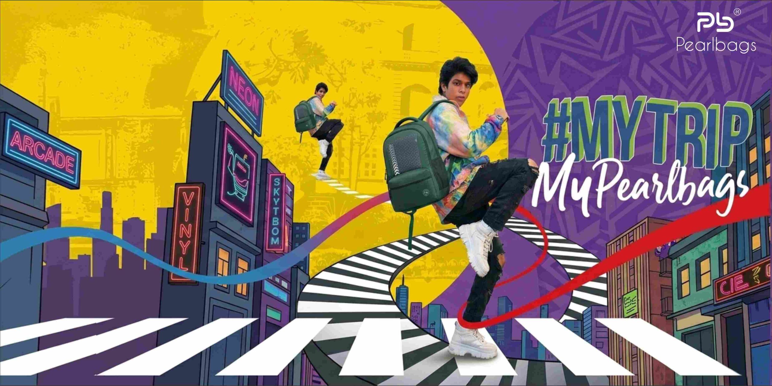 PB Pearlbags Laptop Backpack Archer 22L printed , 3 Compartments, Bottle Holder, Organizer, Premium Fabric, Water Resistant Anti Theft , School & College Bag for Boys and Girls, Office & Travel Bag for Men and Women